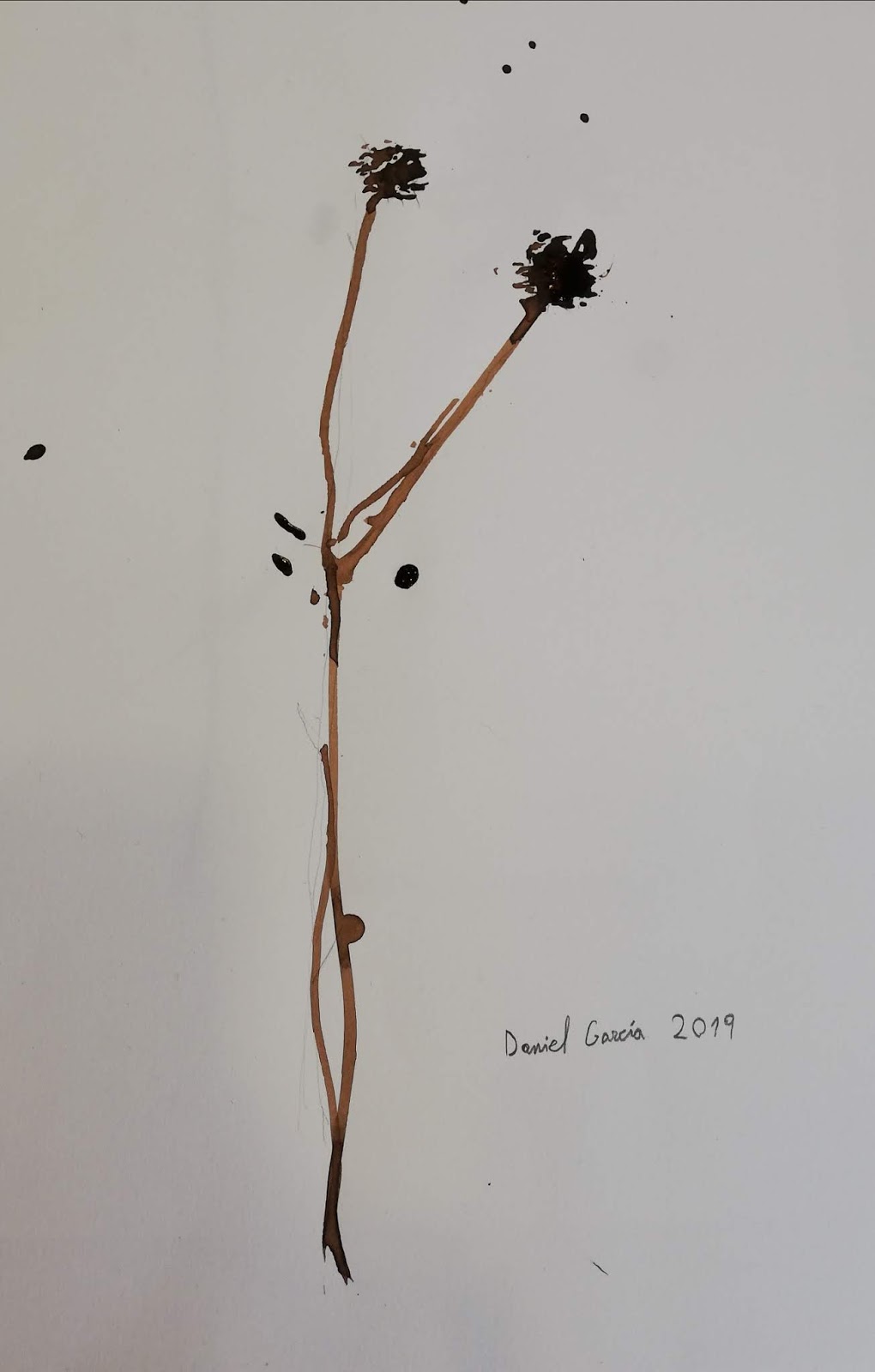 Una vez que hemos probado los pinceles, vamos a dibujar motivos vegetales. Utilizamos plantas secas, recogidas en el campo, para que sirvan de modelo. Observamos su carácter lineal y sus texturas.